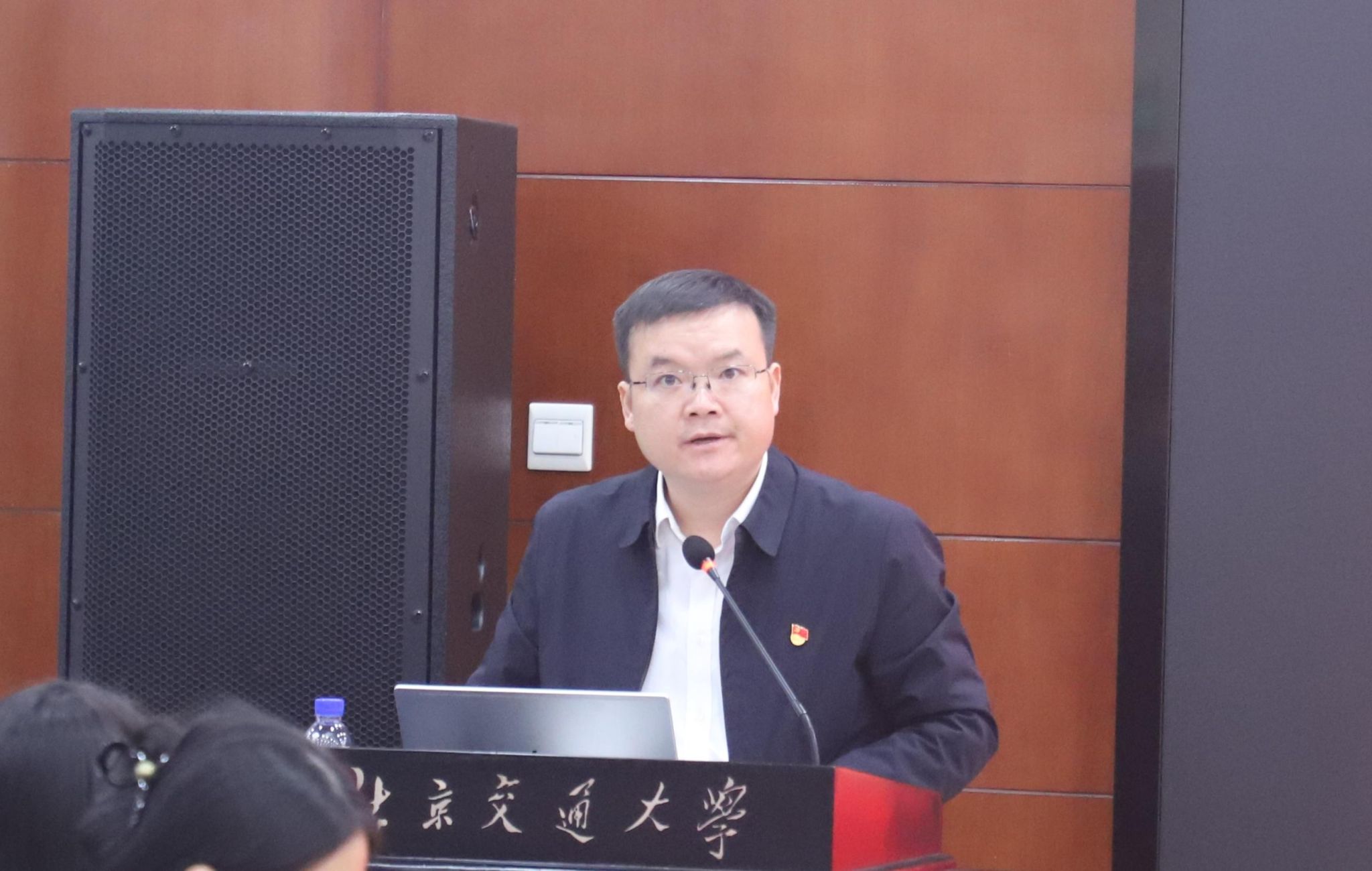 北京交通大学马克思主义学院李家瑞以《厚植两山理念底色,共建美丽中国》为题作报告。他紧扣党的二十届四中全会精神,系统阐释了习近平生态文明思想的实践伟力,生动解析“新质生产力本身就是绿色生产力”的内涵,并鼓励青年学子将专业学习与国情实践紧密结合,为推进美丽中国建设贡献青春智慧。