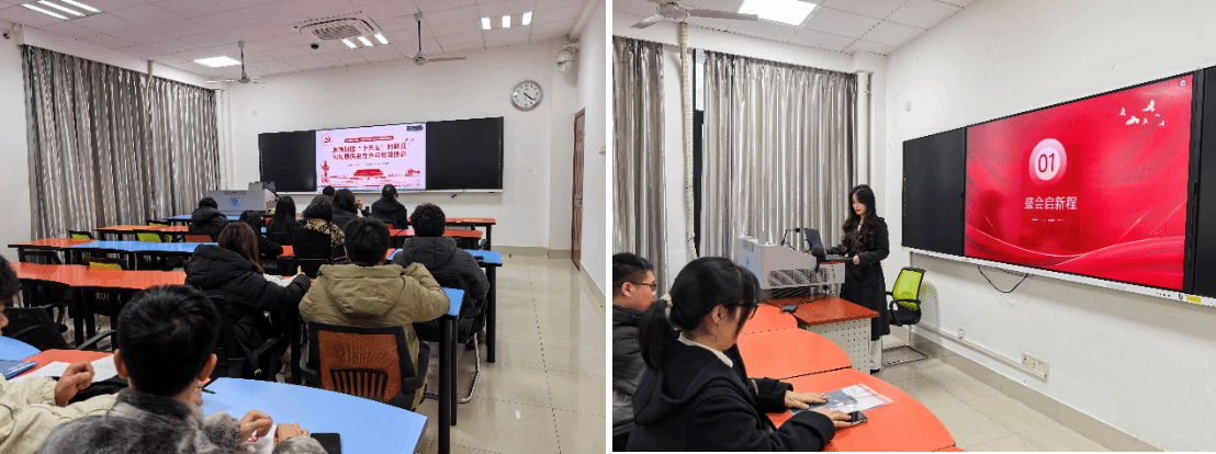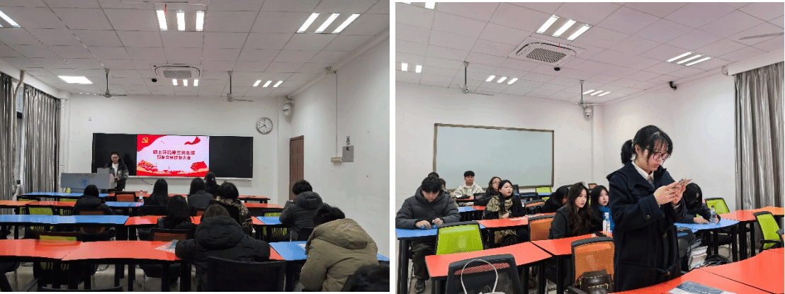 硕士第三党支部在X4136教室开展了12月主题党日活动。本次党日活动的主题为“学习宣传贯彻党的二十届四中全会精神,以教育强国建设支撑引领中国式现代化”,主要学习内容为《党的二十届四中全会〈建议〉学习辅导百问》。本次党日活动由党支部书记唐若愚主持,采用线下线上相结合的方式,选出三名同志分享其学习心得。