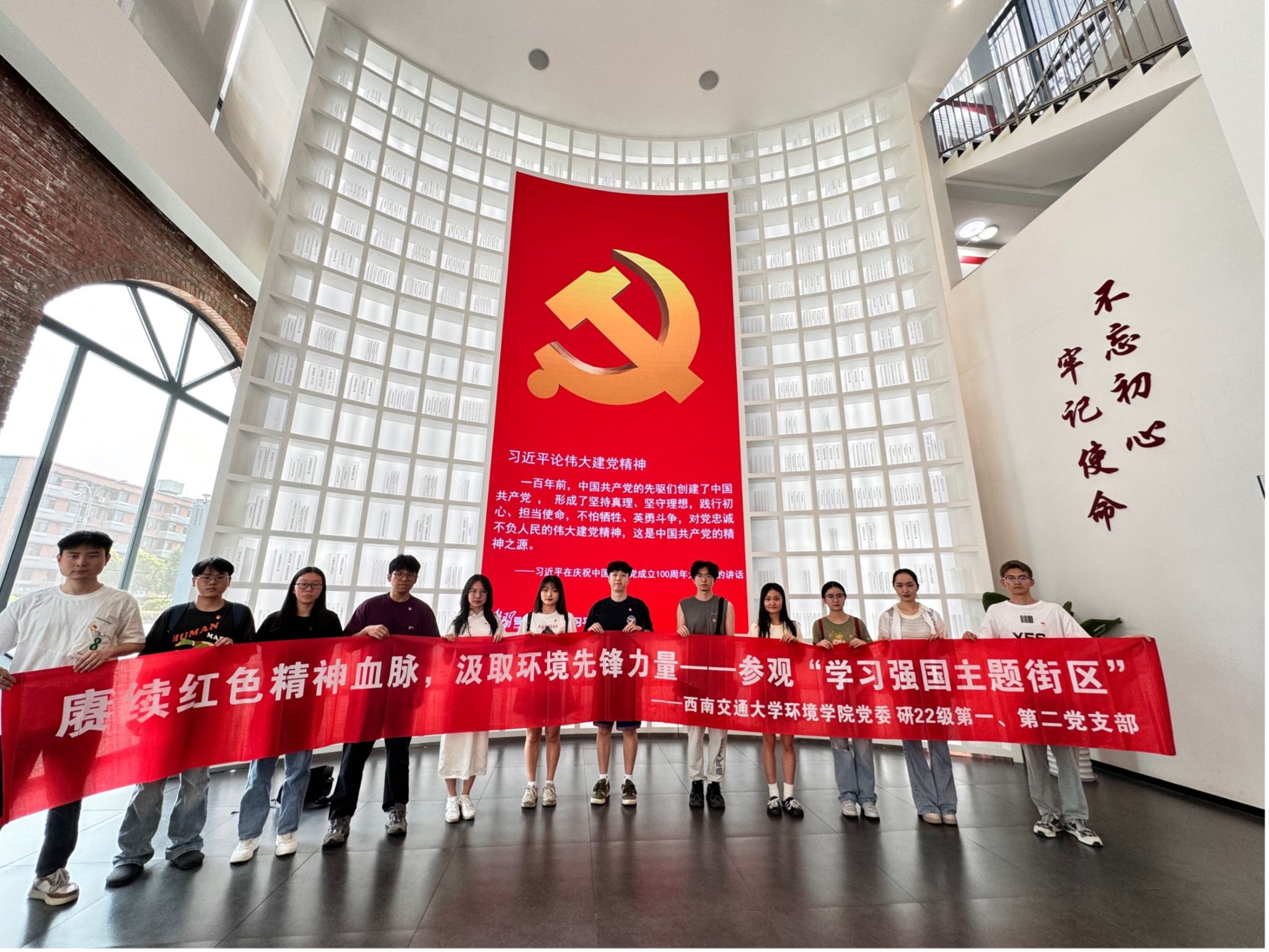 研22级环境第一党支部和研22级环境第二党支部组织党员前往“学习强国”主题街区,开展“赓续红色精神血脉,汲取环境先锋力量”主题实践特色党日活动,回顾党的光辉历程,追寻红色记忆。
