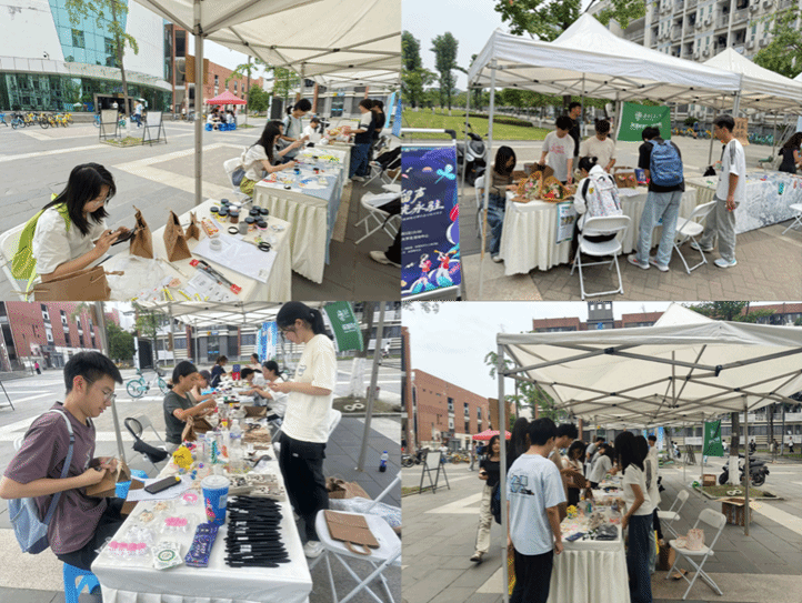 在“变废为宝·生态循环”手工作品竞赛中,参与者们利用废弃纸张、塑料瓶等可回收材料,将纸袋变收纳盒、将废旧瓶盖巧做不倒翁小摆件、将废弃硬纸板与新鲜花束通过绘画有机结合,打造创意画作,引导广大师生在轻松愉快的氛围中感受守护生态环境的乐趣。