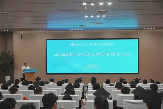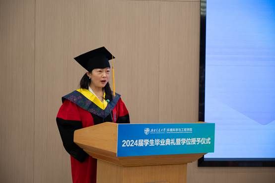 龚正君院长对即将启航的2024届毕业生表达了最真挚的祝愿与祝福,同时,离别之际,向毕业生寄予了三点暖心叮咛:一是,人生很长、挑战很多,坚韧是前行的底色。希望同学们直面生活的不易,坚持发扬敢为人先、追求卓越的精神追求,用好学习“利器”、磨砺抗挫能力、保持追求新奇与新知的兴趣热情,在“吃苦”中收获,在奉献中成长。二是,心系家国、厚植情怀,奋斗是人生的本色。生逢“两个百年”历史交织的机遇期,希望环境学子能接过美丽中国建设的接力棒,矢志奋斗,为推动中华民族勇毅前行注入磅礴力量。三是,崇德向善、行为世范,品德是致远的成色。希望环境学子,能够成为道德底线和社会良知的守护者,坚持知行合一,坚定文化自信,树立民族信仰,同时,博爱待人、宽厚处事,真正成为社会进步的正能量。