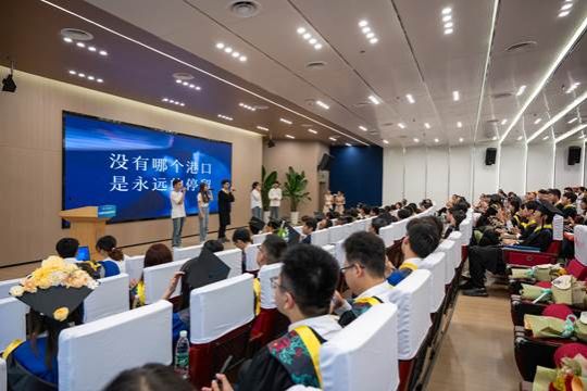 党委书记甘霖、执行院长龚正君教授、副院长张涵教授、副院长赵锐教授、范美坤教授、苏凯副教授、彭道平副教授、张军科副教授、张胜利副教授、刘颖副教授、陈斯恺副研究员,学院教师代表、辅导员,以及2024届全体学生参加典礼。本次典礼由SeedHub