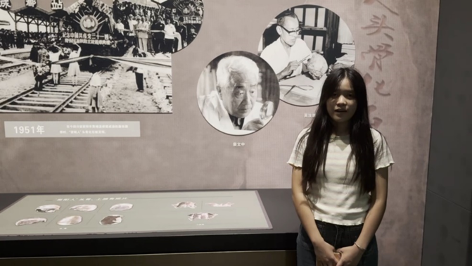 次日,实践队员张恩源、张涵等赴四川博物馆开展实践活动。师生于展厅参观中了解千年来古蜀道荡气回肠的开辟与发展历史,感悟雄关古道中蕴含的工程与生态智慧。实践队员将陈列内容与成渝铁路建设相结合,以“蜀道变通途”为题,讲述“新时代青年如何传承科学家精神”,通过镜头展现文物背后的科学家故事。