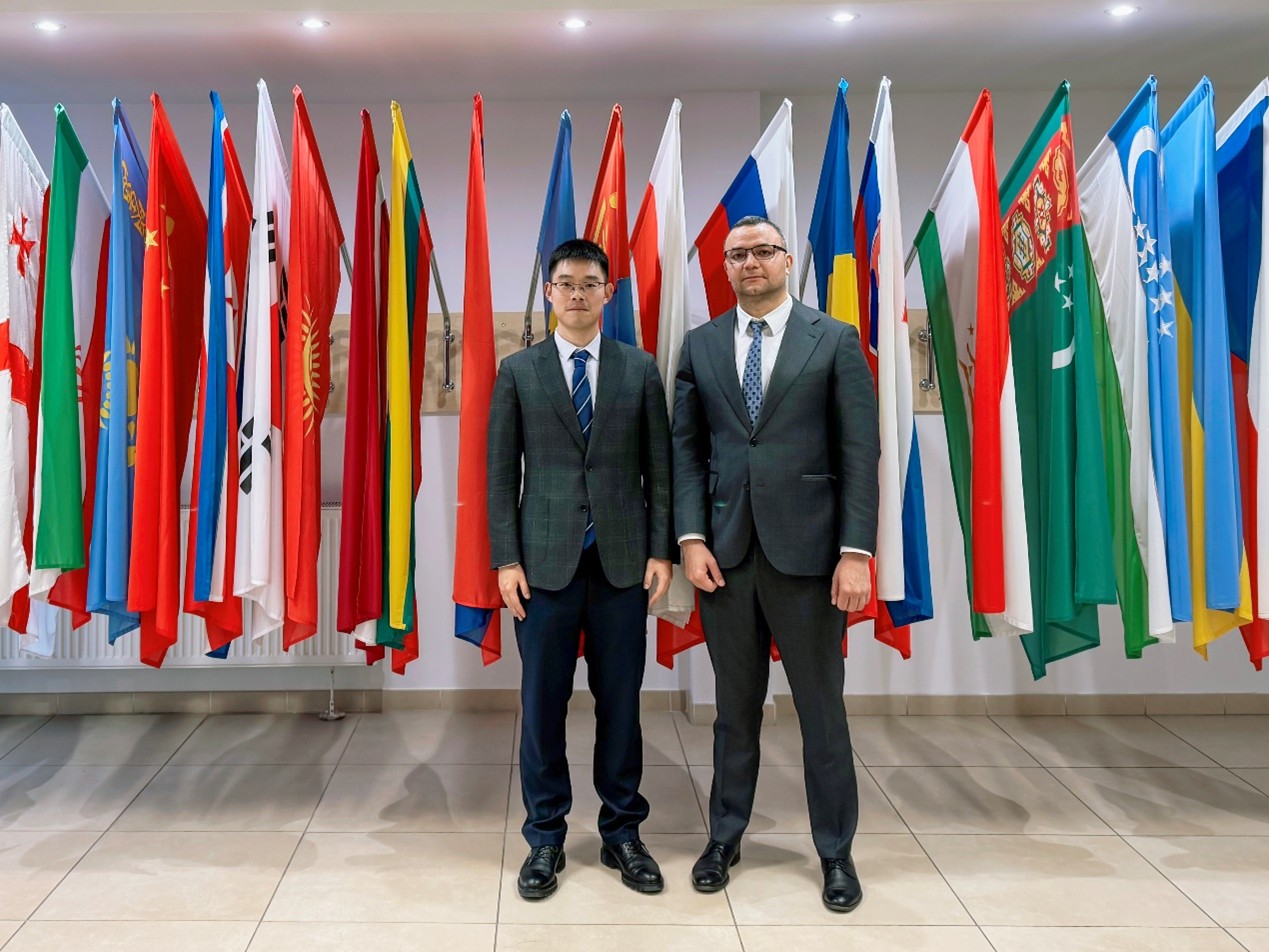 曾卓与铁组运输政策和发展战略专门委员会主席卡尤姆霍贾耶夫·舒赫拉特的合影