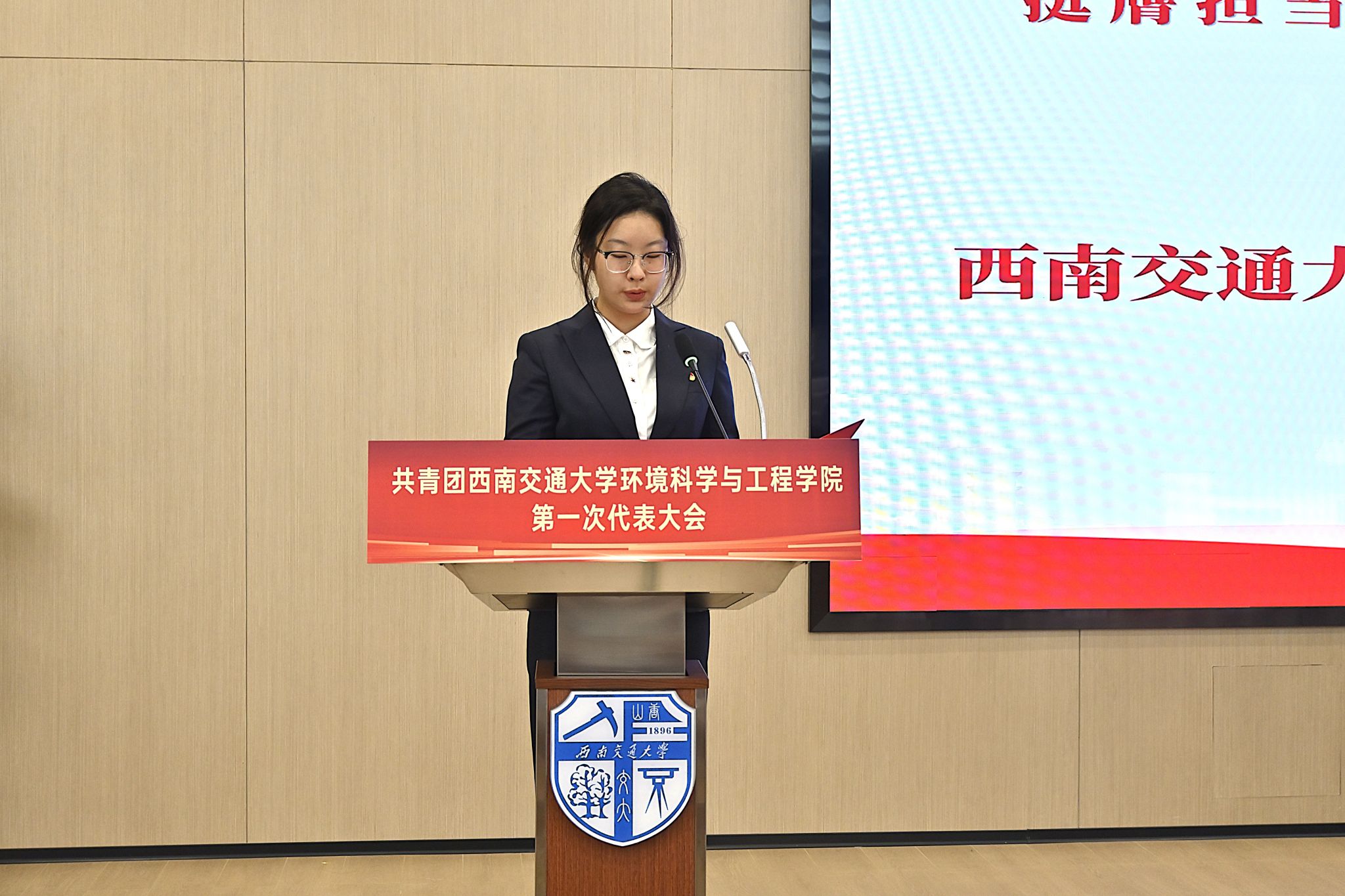 第一次代表大会在犀浦校区图书馆二号报告厅及分会场顺利召开。校团委书记武俊、学院党委书记甘霖、团委书记翟琦、校学生会主席团成员、校研究生会主席团成员、各学院共青团工作一线团干部出席大会,学院66名代表参加大会。开幕式由翟琦同志主持。
