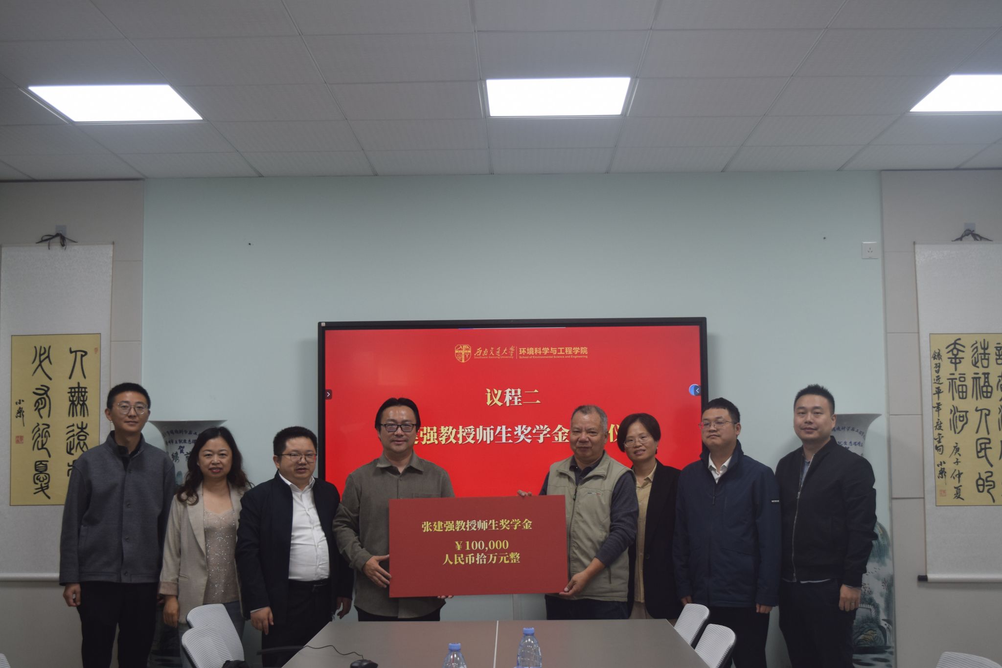 随后,进行了“张建强师生奖学金捐赠仪式”,甘霖书记代表学院接受捐赠并表达感谢。