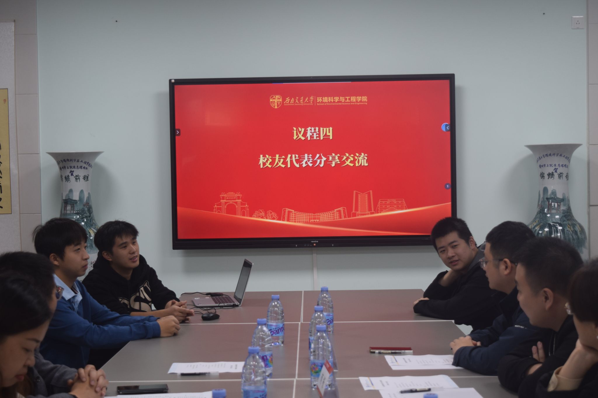 于X4348举办了“张建强教授师生奖学金捐赠仪式暨校友分享交流会”,学院党委书记甘霖,张建强教授,校友工作办公室主任刘颖老师,校友代表何杨、汪锐、朱丽娜,辅导员崔宇龙以及研究生、本科生代表参加。会议由学院党委副书记胡安辉主持。