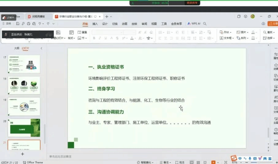第二位分享的是陈锦文。陈锦文2004年就读于环境专业的硕士,现任四川锦美环保股份有限公司环境咨询中心负责人。陈锦文学长从亲身经历出发,分享了个人在择业、国企、私企三个人生阶段进行奋斗的成长经历,结合自己的经历,激励同学们一步步从基层扎实打拼,勤奋学习,并最终成长为行业领军人物。他还建议同学们在校期间做好就业的准备工作,针对性地培养从业所必须的能力和相关证书。