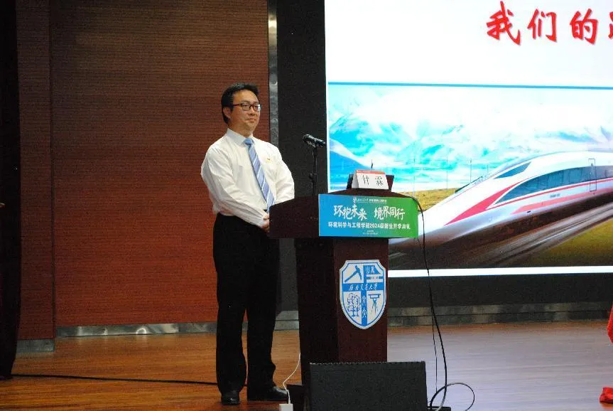 2024级博士生任兴念作为研究生代表发言,表达了对新学术旅程的期待,并承诺将深入研究,积极贡献于环境领域。强调了团队合作的重要性,并鼓励同学们勇于探索,追求卓越。