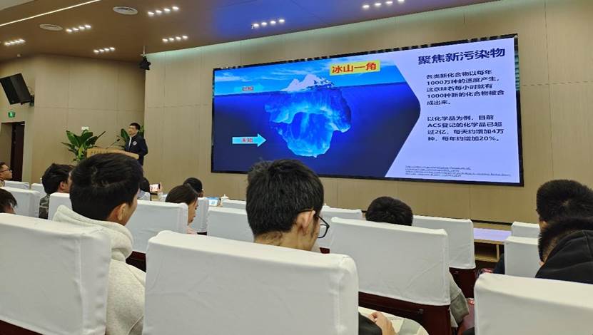 蔡宗苇教授的讲座聚焦于新污染物的质谱化学分析检测技术。他指出,新污染物因其多样性和复杂性,对传统检测方法提出了巨大挑战。蔡教授介绍了质谱技术在新污染物检测中的应用,尤其是在低浓度、复杂基质样品中的高效识别和定量分析方面的突破。他详细讲解了几种创新性分析方法,包括高分辨质谱和非靶标筛查技术的应用,为师生展示了新污染物质谱检测的最新进展。