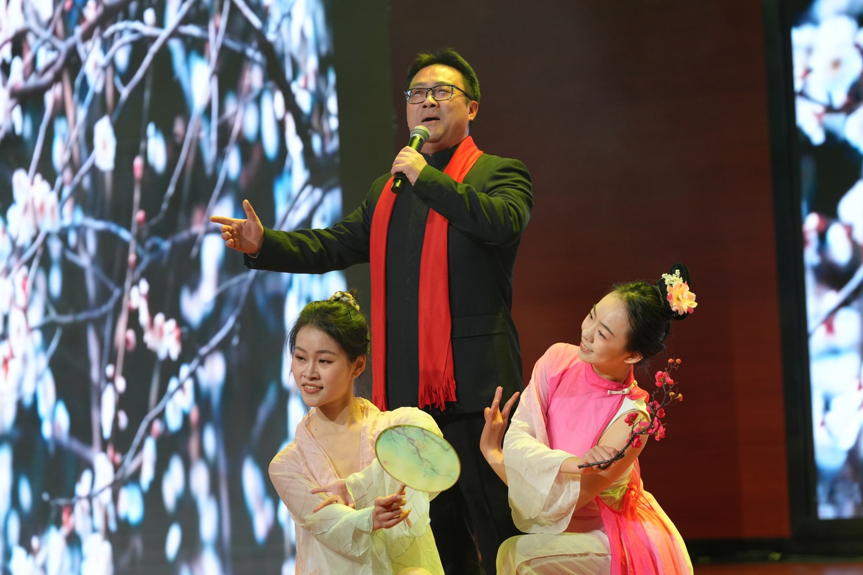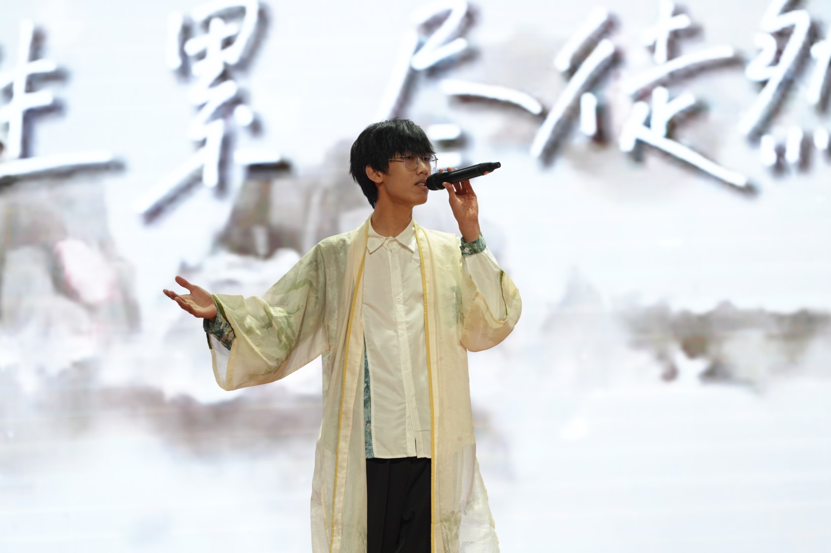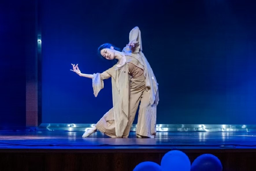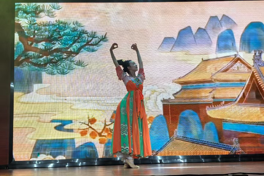 在第二篇章“古韵流芳”中,师生同台为我们献上了一场关于“中华优秀传统文化”的视听盛宴。由甘霖创作并演唱,杜思奇、朱可馨伴舞的《卜算子·咏梅》,如同一幅流动的红梅傲雪图,尽显中国古典韵味。研究生会带来的歌曲《素颜》扣人心弦,回响无穷。舞蹈《唐印》,舞者婀娜曼妙,翩然起舞,仿佛将观众带入了盛唐的繁华。谭洺楷的《河山大好》唱响了山河豪情。学院机关老师的《养生气功·五禽戏》则别具一格,展现了中华传统体育精神和养生文化的深厚底蕴。这一篇章让现场观众对“中国古典文化”一词有了更深刻的理解,进一步感受到了中华优秀传统文化的魅力与厚重。