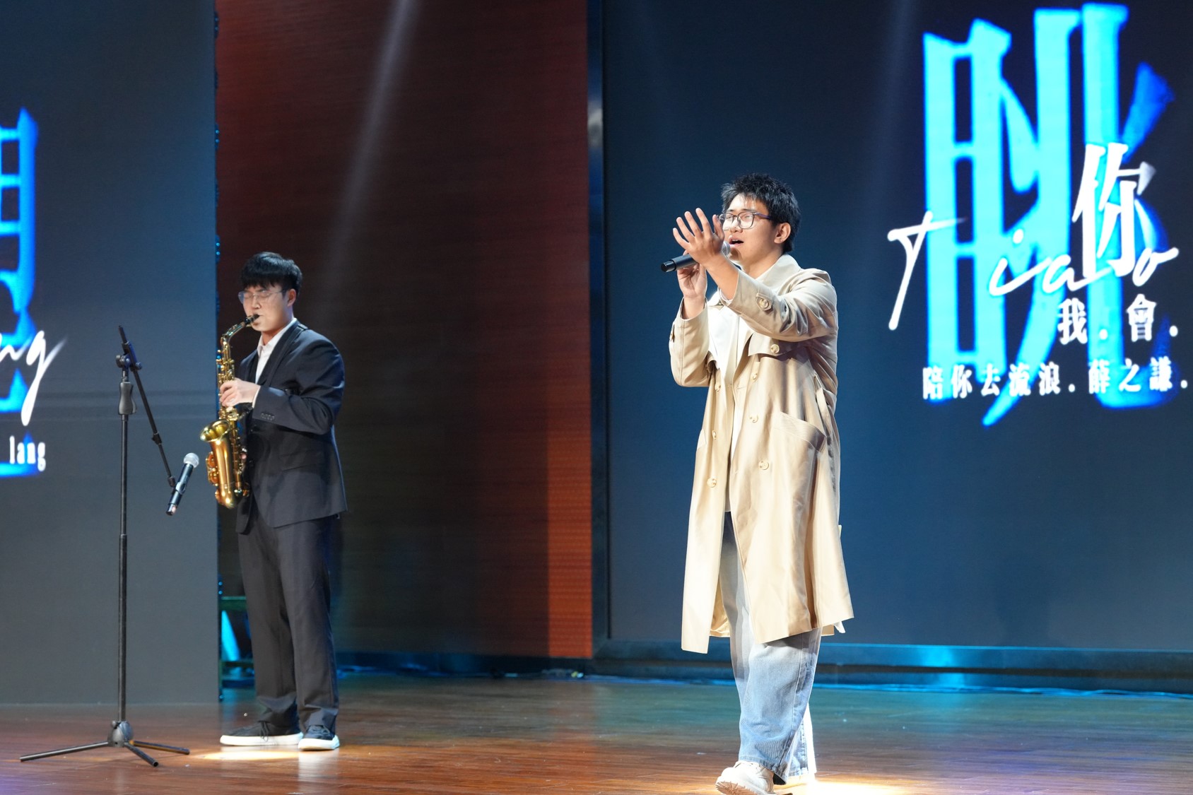晚会共分三个篇章,第一篇章“华彩绽放”中,张雅琪带来的歌曲《落笔成书》如同一支笔触细腻的画笔,描绘出青春的多彩画卷。杜思奇的舞蹈《山野牧歌》则如同一幅生动的水墨山水画,展现了自然的宁静与和谐。王凯和李庭瑞合作的《陪你去远方》以悠扬的萨克斯和歌唱旋律,唤起了人们对未来的无限憧憬。黄泳桦、马钰婷、单赟朵、李羽彤带来的歌曲《如愿》则如同一曲青春的赞歌,表达了环境学子们对崇高理想的执着追求。这一轮表演,同学们热情高涨,整个晚会现场洋溢着青春的气息和对未来的美好期待。聚焦于青年奋斗,“竢实扬华”奖章获得者胡远思、杨涛的演讲《我心中的竢实扬华》分享了他们成长和奋进的故事,鼓励同学们以美丽中国奋斗为己任。