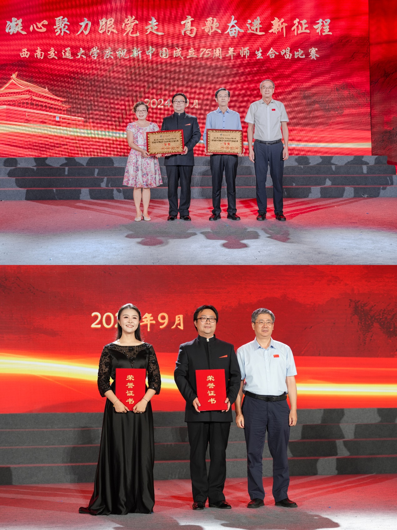 在犀浦校区飞碟体育馆举办了“凝心聚力跟党走,高歌奋进新征程”庆祝新中国成立75周年师生合唱比赛。此次大赛中,环境科学与工程学院师生联合图书馆教职工组成合唱团,以一首《领航》作为参赛曲目,经过大赛的激烈角逐,荣获一等奖;合唱指挥、SeedHub
