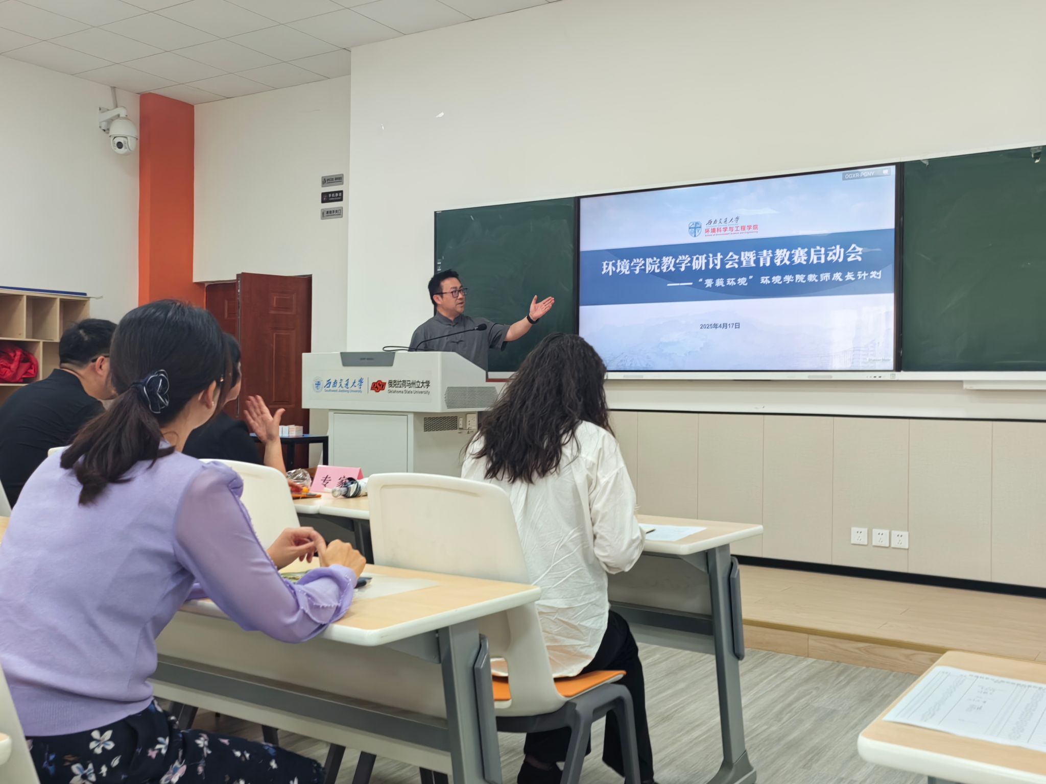 青年教师代表宣湟副教授以“以赛促教助力教学能力提升”为核心,结合环境学科特色,分享了教学竞赛与日常教学的融合之道。他提出,教学竞赛不仅是检验教学水平的“试金石”,更是更新教学理念、创新教学方法的“助推器”,青年教师应借此平台锤炼教学技艺,实现从“站稳讲台”到“站好讲台”的跨越。宣湟老师特别强调,教师对教育的热爱要转化为对学生的深层关怀——不仅是成为学生知识的传递者,更要成为学生价值观塑造的引路人,要坚持用有温度、有热情的教学创造“让学生终身铭记的课堂体验”。