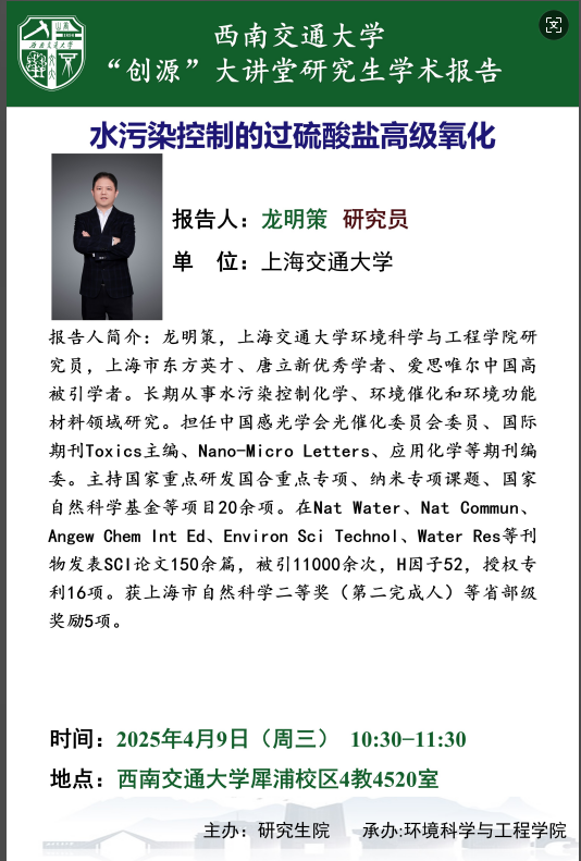 【创源大讲堂】水污染控制的过硫酸盐高级氧化