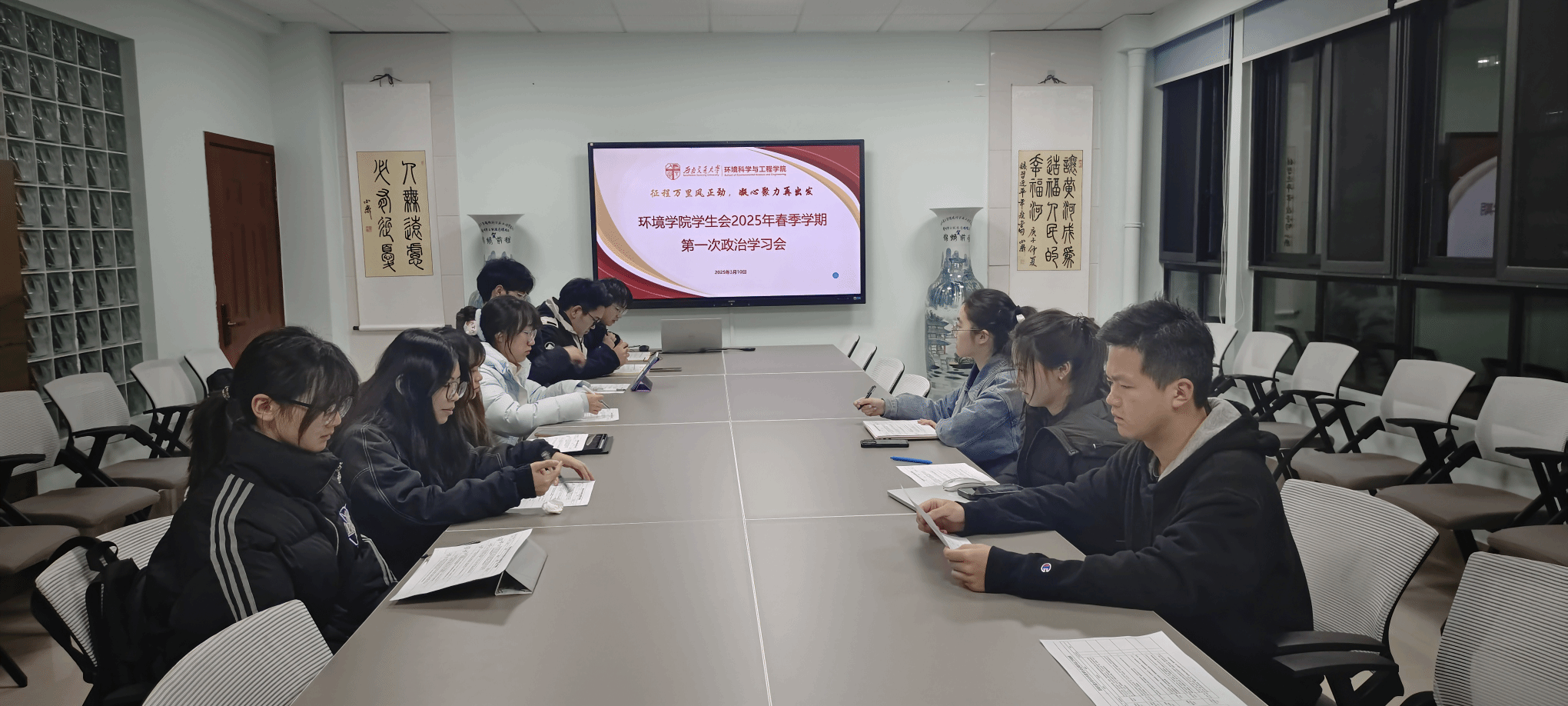 学生会于X4348召开2024-2025学年第二学期首次政治学习会暨工作部署会,此次会议由学生会指导老师曾祥珂主持,学生会主席团及部长团全体成员参加此次会 议。