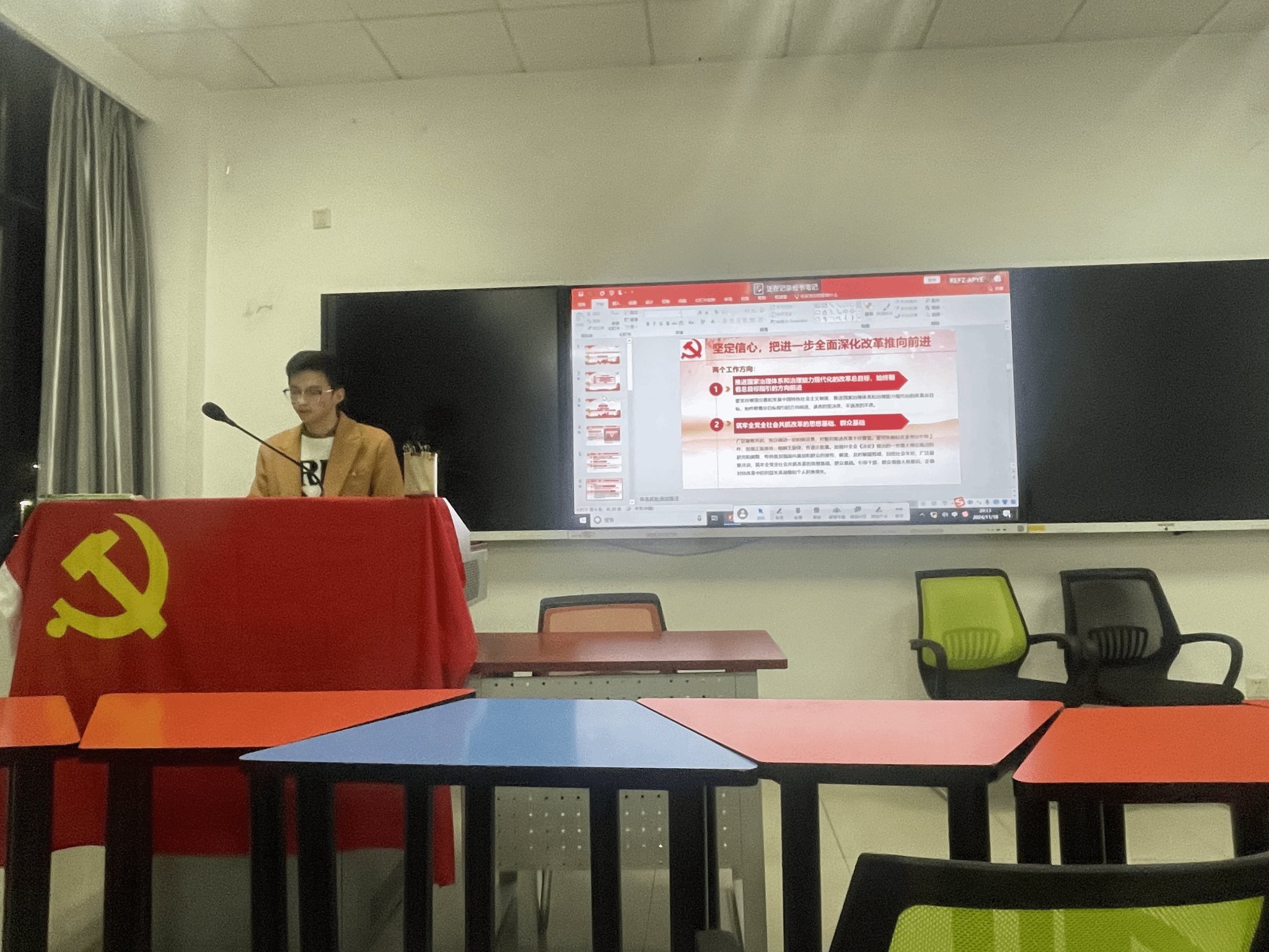 为积极践行党的号召,凝聚青年党员力量,确保思想与行动的高度统一202411172000,研22级环境第二党支部于X4131教室开展主题党日活动,围绕党的二十届三中全会精神、全国教育大会精神进行深入学习以及专题学习教育现代化的具体要求与路径。会议由支部书记邱建宏主持,由汤嘉玺同志主讲