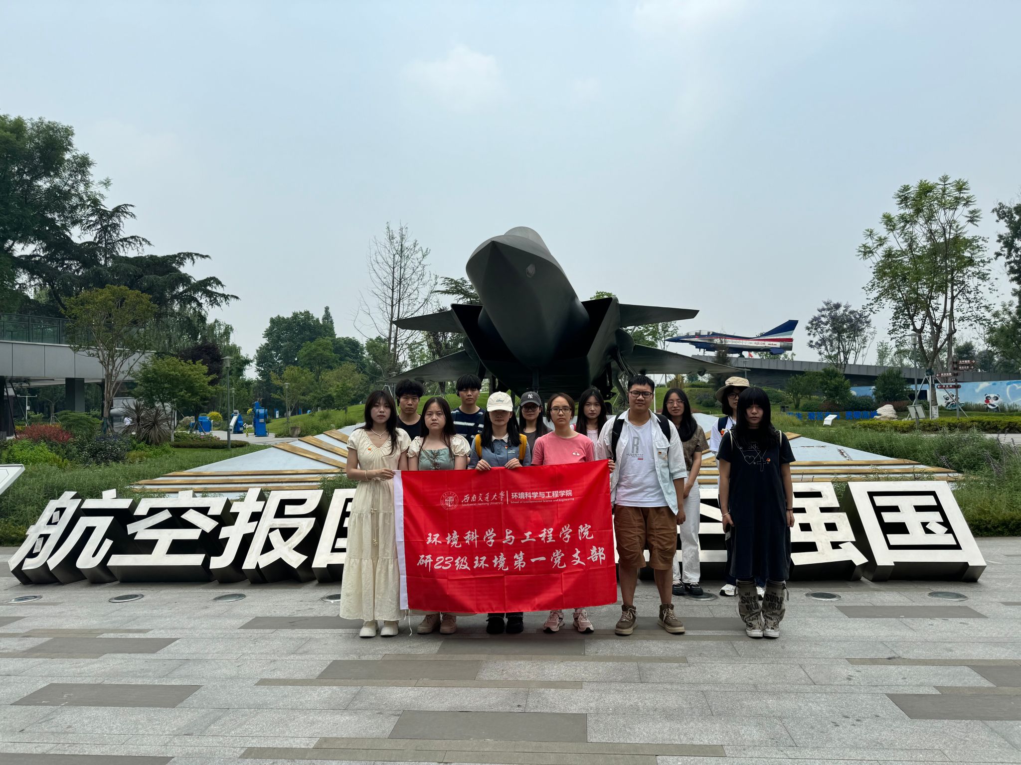 为深入开展党纪学习教育,学习贯彻习近平总书记关于全面加强国家安全教育的重要指示精神,坚定学生党员的理想信念,增强国防意识和安全意识,2024年5月16日,本科环境第一党支部、研2023级环境第一党支部两支部组织开展“翱翔蓝天·铸梦未来——成飞航空主题国防教育之旅” 本研共建特色主题党日活动,两支部党员及入党积极分子共27人参加活动。