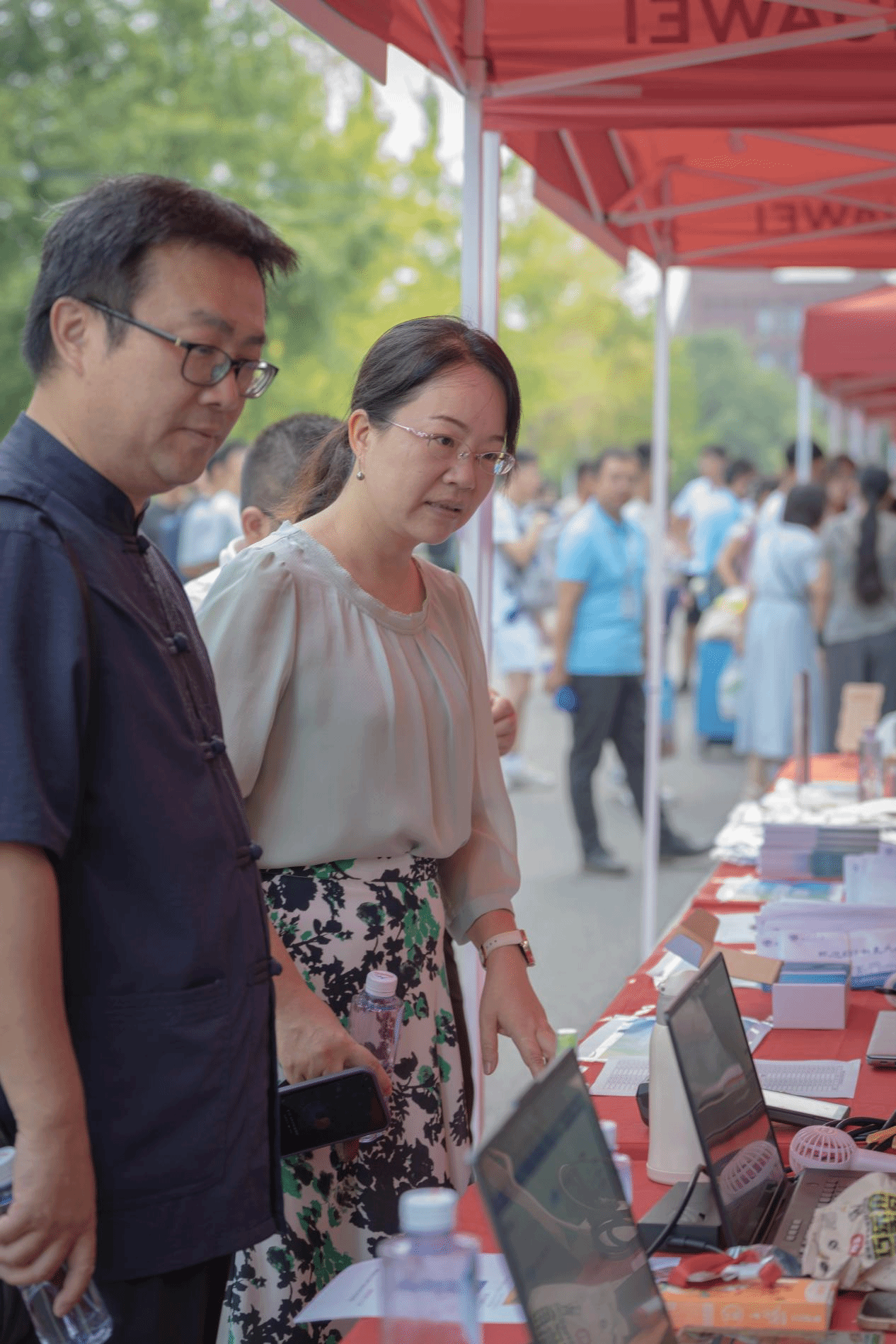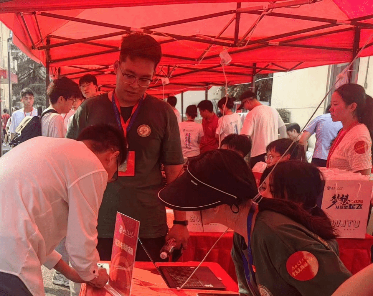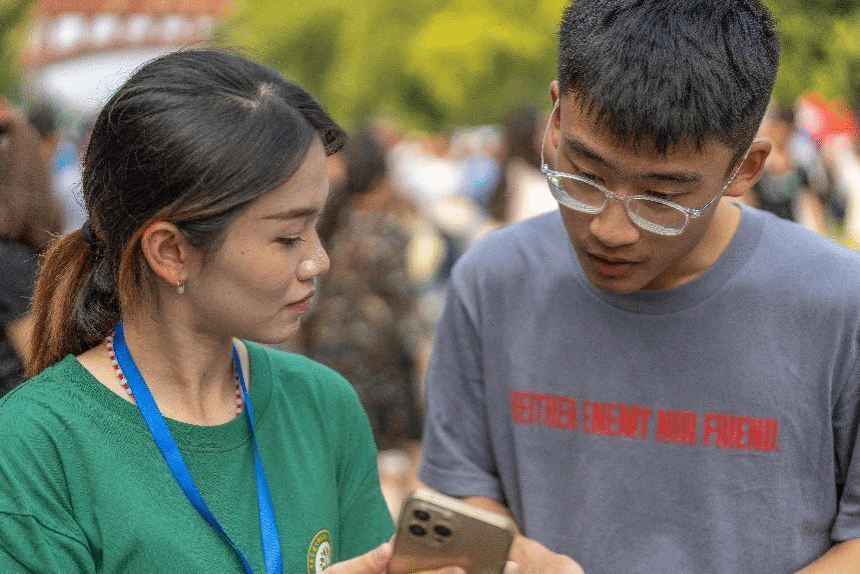 炎炎夏日也亲自来到迎新点为新生和家长们答疑解惑